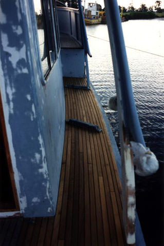 - Plywood used under teak decking, not marine grade and end grain poorly sealed with half round timber moulding