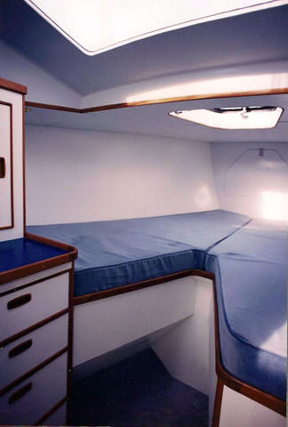 Keel cooled Perkins, custom made refrigerator and freezer, extensive teak trim to cockpit, with moulded lexan screen with stainless steel trim.